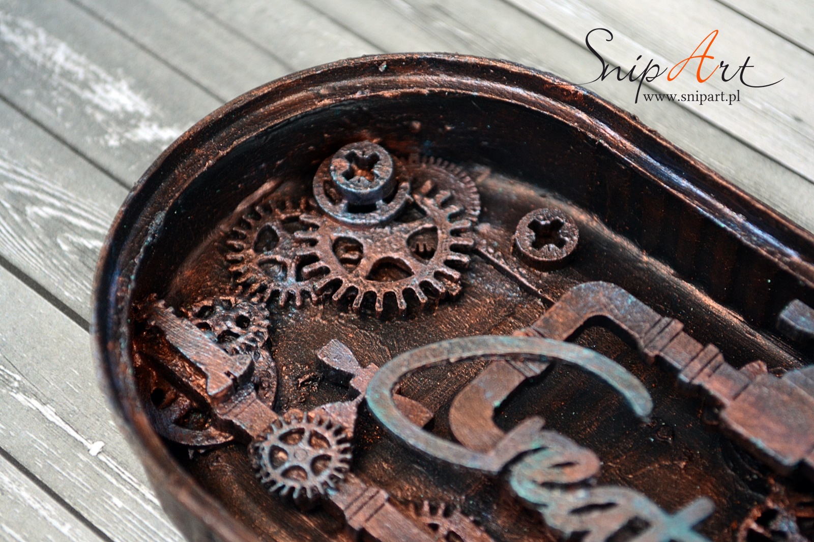 Projekt ten powstał jako inspiracja dla Snipartu. Puszka wypełniona jest cudownymi tekturkami  i MDF - ami z kolekcji "Industrial Factory".